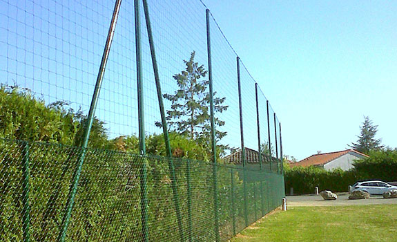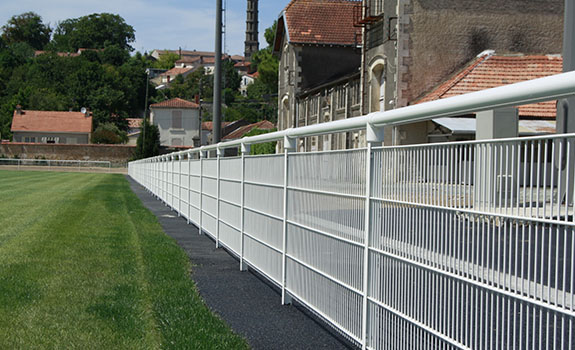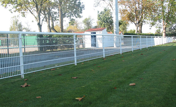 Poteaux et lisses en acier galvanisé diamètre 60 mm, épaisseur 2 mm ou aluminium.