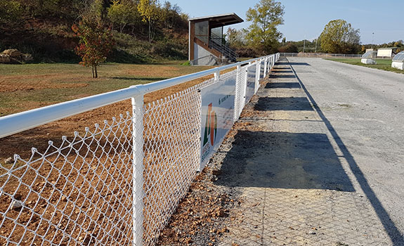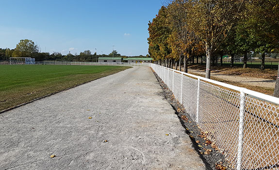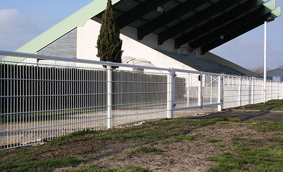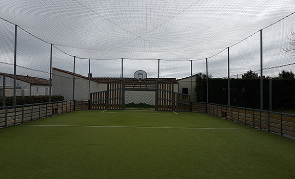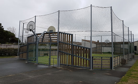 Les pièces de jonction, Tés, coudes angle 90° et variables sont en aluminium monoblocs. Passages coulissants ou pivotants de 3m pour les engins et 2 m pour les joueurs.