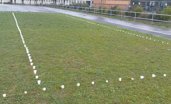 – Repères Plifix pour le marquage des lignes sur les terrains engazonnés.