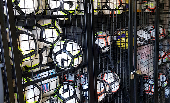 – Armoires range ballons ou rateliers pour poteaux (tennis, volley-ball…)