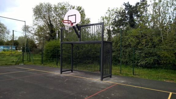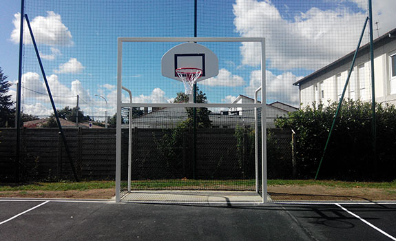 - Buts multisports Hand/Foot/Basket tout métal de dimension 2×3 m avec cage arrière. Fonds de cages en filet maille 50 mm ou en remplissage barreaudé